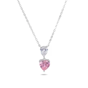 שרשרת כסף 925 עם תליון לב ורוד וטיפת זירקון