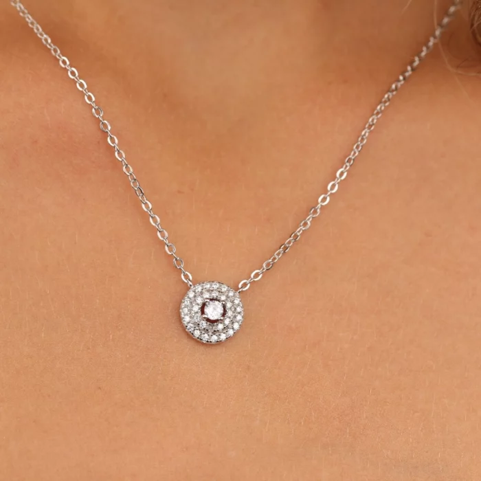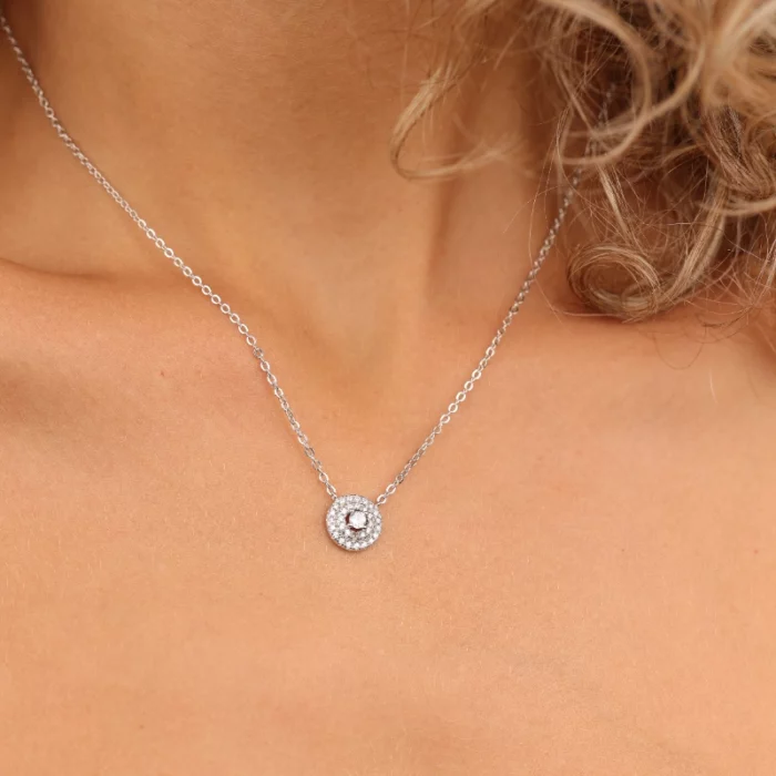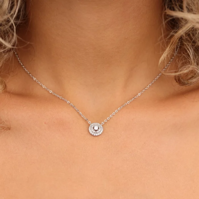 שרשרת כסף 925 עם תליון עגול משובץ זירקונים – יוקרה בנגיעה קלאסית