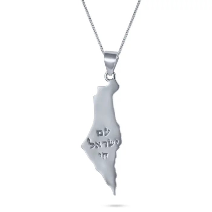 שרשרת כסף 925 תליון מפת ישראל עם חריטה 'עם ישראל חי'