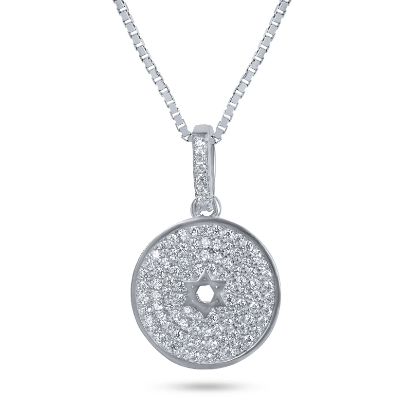 שרשרת כסף 925 תליון עגול משובץ עם מגן דוד
