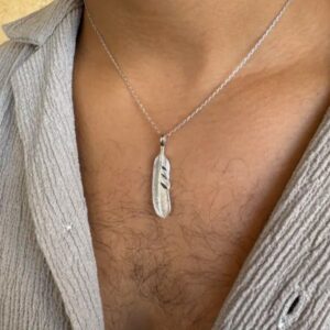 ⭐⭐⭐⭐⭐✨ שרשרת כסף אלגנטית מבית עם תליון נוצה מעוצב בקווים עדינים. העיצוב משדר חופש, טבעיות וסטייל מודרני, ומשתלב בקלות עם כל הופעה – מהיומיומית ועד לאירוע ייחודי.