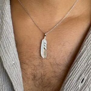 ✨ שרשרת כסף אלגנטית מבית עם תליון נוצה מעוצב בקווים עדינים. העיצוב משדר חופש, טבעיות וסטייל מודרני, ומשתלב בקלות עם כל הופעה – מהיומיומית ועד לאירוע ייחודי.