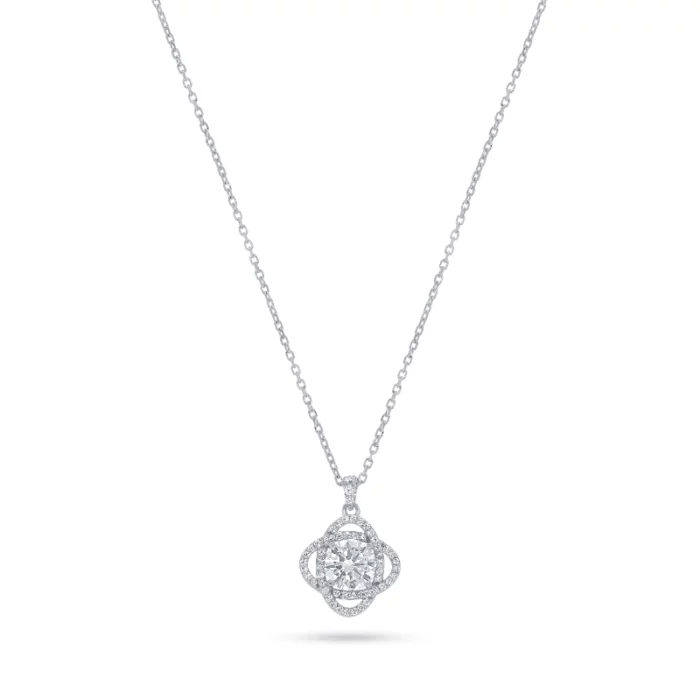 ✨ שרשרת כסף 925 עם תליון בעיצוב תחרה סביב אבן מרכזית עגולה ✨