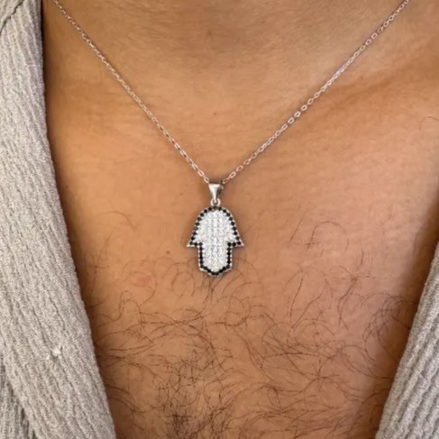 ✨ שרשרת לגבר מבית , עם תליון חמסה מרהיב בעיצוב קלאסי, משובץ אבני זירקון מבריקות.