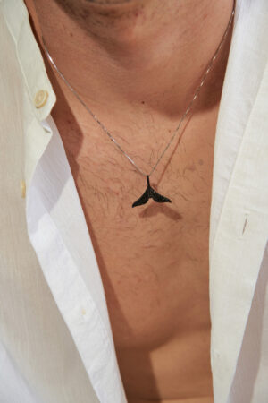 שרשרת גברית בעיצוב מתוחכם ומרשים, עשויה מכסף 925 איכותי וכוללת תליון ייחודי בצורת סנפיר. התליון משובץ באבנים שחורות עדינות, המעניקות לו מראה מודרני ואלגנטי. השרשרת משתלבת היטב עם סגנון לבוש קז'ואלי או אלגנטי, ומשדרת עוצמה וסגנון אישי ייחודי.